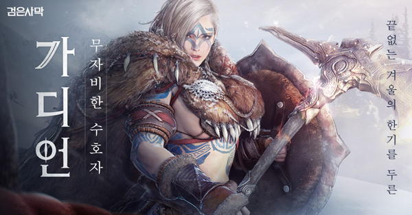 ‘가디언’은 큰 전투도끼와 방패를 무기로 사용하는 강력한 여전사 캐릭터다. ‘가디언’은 ▲거암 가르기 ▲대지 강타 ▲검은 피의 영역 ▲검은 피의 도륙 등 적에게 돌진해 공격을 가하는 근접형 스킬을 지녔다.