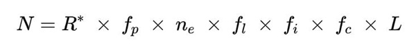 윌 라이트는 심시티를 개발할 때도 그랬고 심즈를 개발할 때도 그랬듯이 SETI 프로젝트에 빠지게 되면서 우주적 스케일의 게임을 개발할 때 역시 수많은 연구논문 자료를 찾았다. 그 중에서도 가장 심도 있게 접근한 것이 ‘드레이크 방정식(Drake equation)’이다. 드레이크 방정식은 외계의 지적 생명체의 수를 계산하는 방정식이다. 1960년대 최초로 계산식을 고안한 프랭크 드레이크 박사의 이름을 딴 방정식인데 방정식의 계산식은 다음과 같다.
