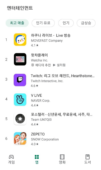 하이퍼커넥트는 자회사에서 서비스 중인 소셜 라이브 스트리밍 서비스 ‘하쿠나 라이브(Hakuna Live)’가 구글플레이 엔터테인먼트 앱 매출 1위를 기록했다고 7일 밝혔다.