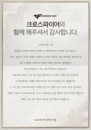 크로스파이어는 2007년 출시 이래 전 세계 80여개국, 10억명의 회원을 보유한 글로벌 메가 히트작이다. 현재 전 세계 80여개 나라에서 서비스 중이다. 현재 크로스파이어의 글로벌 e스포츠 리그 ‘CFS(크로스파이어 스타즈, CROSSFIRE STARS)’는 2013년 출범한 이래 매회 평균 2000만 여명의 뷰어십을 기록하고 있으며 중국을 비롯, 남미, 동남아 및 아프리카 지역까지 그 영역을 확장해 나가고 있다.