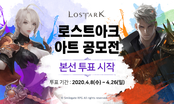 스마일게이트 RPG(대표 지원길)는 핵앤슬래시 MMORPG ‘로스트아크’ 이용자들이 직접 참여해 만들어 나가는 ‘로스트아크 아트 공모전’의 최종 수상작 선정을 위한 투표 페이지를 오픈 했다고 8일 밝혔다.