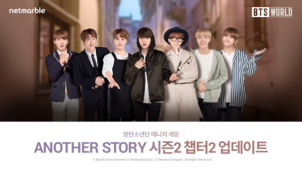 넷마블(대표 권영식, 이승원)은 방탄소년단 매니저 게임 ‘BTS 월드(BTS WORLD, 개발사 테이크원컴퍼니)’에 ‘ANOTHER STORY 시즌 2’의 새로운 챕터와 신규 5성 카드를 추가하는 업데이트를 실시했다고 27일 밝혔다.