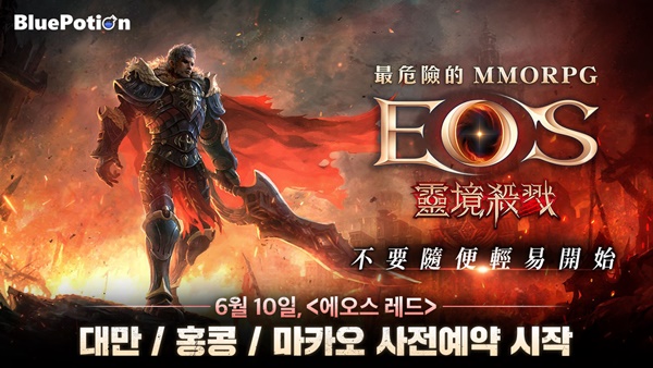 블루포션게임즈(대표 신현근)는 직접 개발하고 서비스하는 모바일 정통 MMORPG ‘에오스 레드’ (대만 게임명 영경살육)의 대만, 홍콩, 마카오 지역 사전예약을 시작한다고 10일 밝혔다.