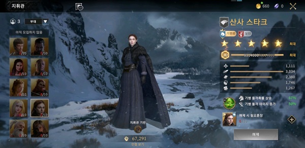 ‘왕좌의게임: 윈터이즈커밍’은 원작에 등장하는 캐릭터들이 이용해 자원을 수집하고 도시를 개발하는 전쟁 전략 게임이다. 유주게임즈는 HBO와 정식 라이선스 계약을 맺고, 출연 배우들의 모습을 빼닮은 캐릭터들을 다수 등장시켰다. 대너리스 타르가르옌은 에밀리아 클라크, 세르세이 라니스터는 레나 헤디, 산사 스타크는 소피 터너의 모습 그대로 등장한다.