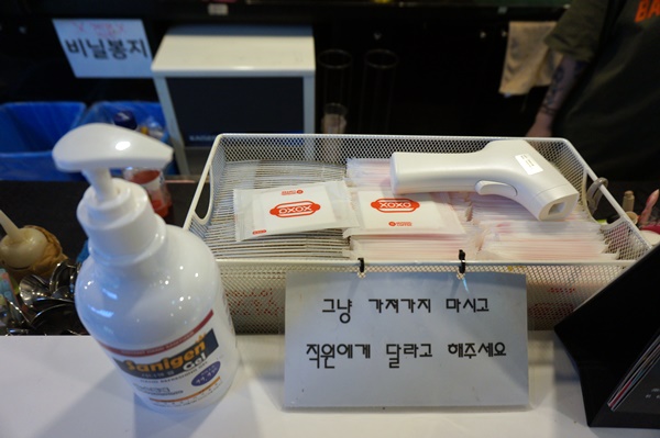 매장을 관리하는 곽순호 매니저는 “가끔 술 한잔 하고 오신 손님들이 체온 측정을 거부할 때가 있다”며 “그러나 방역수칙에 대해 자세하게 설명을 드리면 대부분 납득하고 체온을 잰다. 대부분의 손님들은 이 과정을 잘 따라 주시는 편”이라고 설명했다.