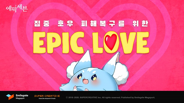 스마일게이트 메가포트(대표 장인아)는 자사가 서비스하고 슈퍼크리에이티브(김형석, 강기현 공동대표)가 개발한 모바일 턴제 RPG ‘에픽세븐’의 이용자들과 함께 최근 발생한 집중 호우로 침수 피해를 입은 전국 그룹홈을 지원하기 위한 기부 캠페인 ‘EPIC LOVE’를 진행한다고 14일 밝혔다.