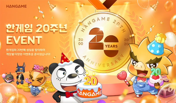NHN(대표 정우진)이 한게임 20주년을 맞아, 대표 게임 이벤트를 진행한다고 20일 밝혔다.