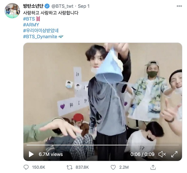 글로벌 슈퍼스타 방탄소년단(BTS)의 디지털 싱글 ‘다이너마이트(Dynamite)’가 빌보드 ‘핫 100’ 1위에 올랐다는 소식이 소녈미디어 트위터를 뒤흔들었다.