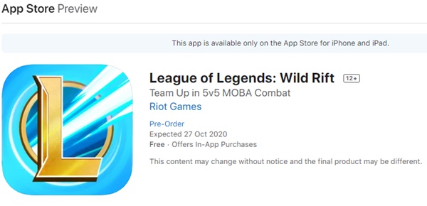 17일 북미 ‘리그오브레전드’ 커뮤니티는 애플 앱스토어에 공개된 ‘리그오브레전드: 와일드리프트(이하 와일드리프트)’ 프리뷰 페이지로 한바탕 술렁였다. 아이폰 및 아이패드 출시에 앞서 사전등록을 안내하는 이 페이지에 ‘2020년 10월 27일 예정’이라는 문구가 씌어져 있었기 때문이다. 북미 팬들은 이 날 ‘와일드리프트’가 전세계에 정식 출시되는 것 아니냐며 한껏 기대감을 내비쳤다.