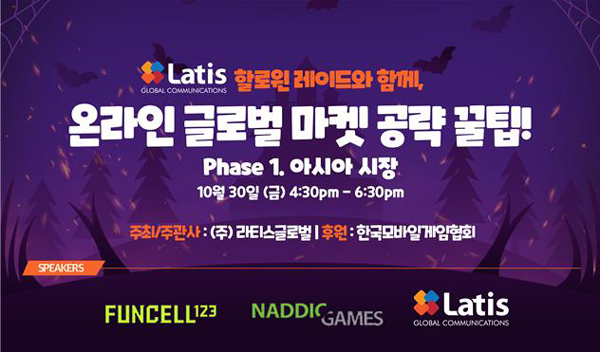 라티스글로벌은 10월 30일 서울 테헤란로에 위치한 잼라운지에서 회원사 및 중소 개발사의 글로벌 진출을 돕기 위한 ‘온라인 글로벌 마켓 공략 꿀팁!, 아시아 시장’ 세미나를 개최한다고 밝혔다.