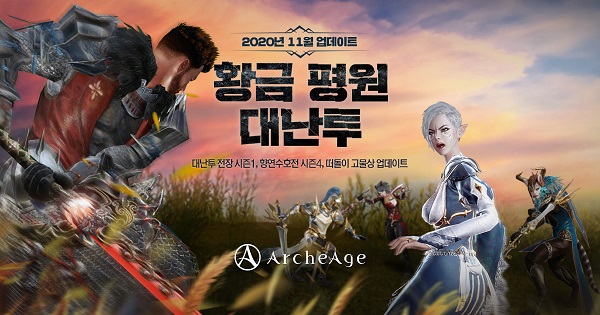 엑스엘게임즈의 대표작 ‘아키에이지’가 11월 업데이트로 ‘황금 평원 대난투’를 비롯해 새롭게 단장한 향연수호전 시즌4 등 다양한 업데이트를 선보인다.