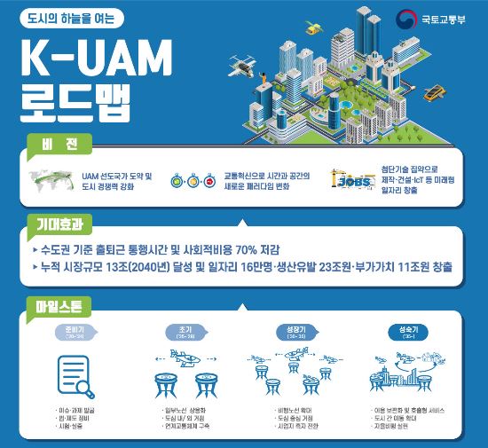 한국은 세계적인 수준에서의 전기동력 수직이착륙기(eVTOL) 기술을 갖고 있어 기체개발 속도는 매우 빠르게 진행되고 있다. 2023~2025년경에는 미국·유럽 등지에서 상용서비스가 도입될 가능성도 크다.