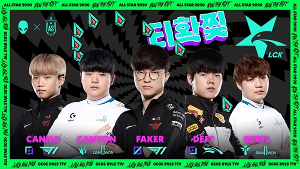 라이엇 게임즈는 지난 10일부터 17일까지 일주일 간 진행된 각 지역별 팬 투표를 통해 올스타전에 참여할 선수 라인업을 최종 확정했으며, LCK에서는 T1 탑 라이너 ‘칸나’ 김창동, 담원 게이밍 정글러 ‘캐니언’ 김건부, T1 미드 라이너 ‘페이커’ 이상혁, 한화생명e스포츠 원거리 딜러 ‘데프트’ 김혁규, 담원 게이밍 서포터 ‘베릴’ 조건희가 선정됐다.