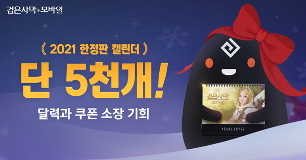 한정판 달력은 검은사막 모바일에 출시된 클래스 아트웍을 활용해 기획 구성했다. 구매자는 매달 1,000 블랙펄씩 총 12,000 블랙펄로 구성된 쿠폰을 받을 수 있다.