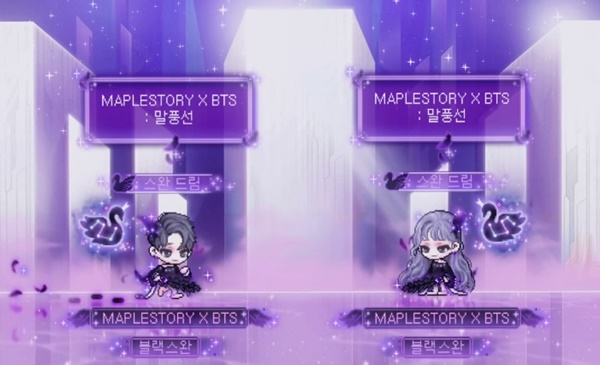 특히, ‘메이플스토리’와 방탄소년단의 개성이 조화롭게 담긴 ‘블랙스완 패키지’는 디자인 첫 공개때부터 양쪽 팬들에게 가장 기대되는 아이템으로 떠올랐고, 게이머와 팬들은 게임 커뮤니티와 트위터를 통해 아이템에 대한 서로의 생각과 반응을 크로스 공유하고 있다.