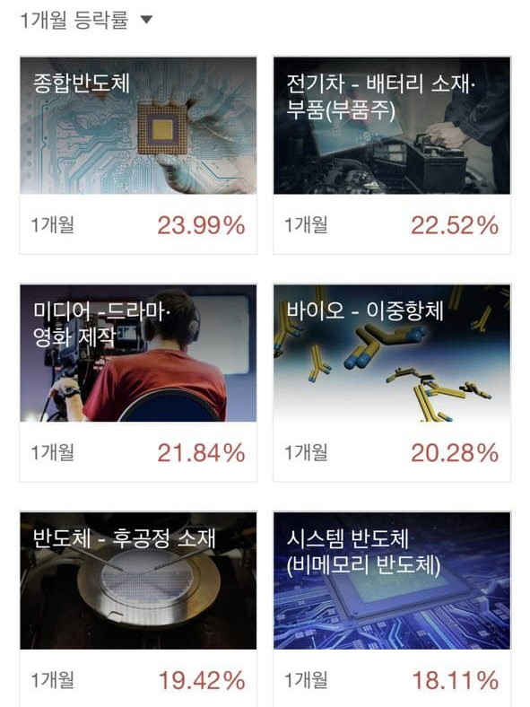 마지막 3위에는 미디어 드라마·영화 테마가 21.84% 상승하며 이름을 올렸다.