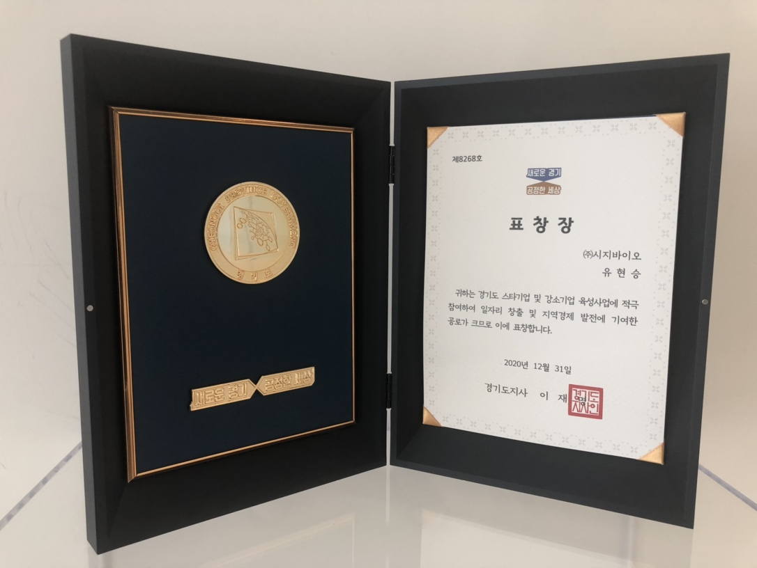바이오 소재 기술기반 재생의료 전문기업 ㈜시지바이오의 유현승 대표가 ‘2020년 경기도 중소기업 성장발전 유공자 표창’을 수상했다.