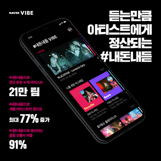 네이버는 10일부터 VPS 확산을 위한 #내돈내듣 캠페인 페이지를 변경하고 현재 VPS 정산에 참여하고 있는 블랙핑크, 악동뮤지션, 송민호, 더콰이엇 등의 아티스트들을 보여주며 독려에 나섰다.