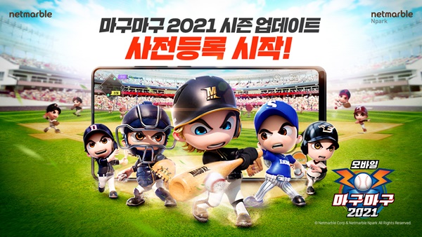 넷마블(대표 권영식, 이승원)은 야구게임 '마구마구2021 모바일'(개발사 넷마블앤파크)의 2021 KBO 리그 업데이트에 앞서 특별 페이지를 오픈하고, 3월 28일까지 사전등록과 이벤트를 실시한다고 12일 밝혔다.