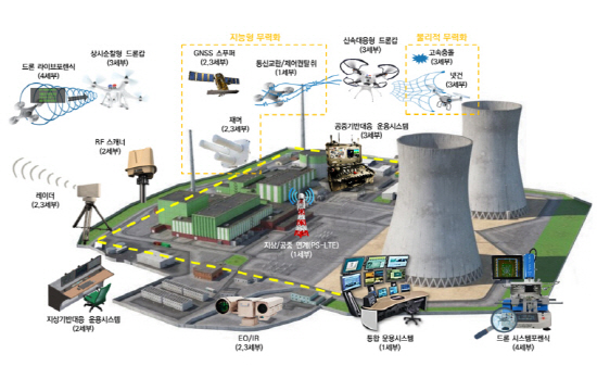컨소시엄은 불법드론의 탐지‧식별‧분석‧무력화‧사고조사 등 발견부터 사후처리까지 일괄로 대응 가능한 통합솔루션을 개발하고, 실제 원자력시설 및 공항에 구축하여 실증할 계획이다.