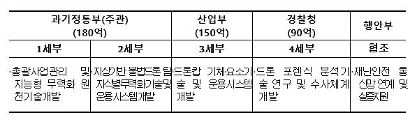 과기정통부, 산업통상자원부, 경찰청이 참여하는 다부처 사업이다. 2021년도 예산은 66억원으로 과기정통부 신규 2과제 30억, 산업부 신규 23억, 경찰청 신규 13억원이다.