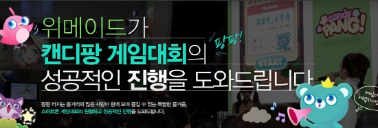 현재 위메이드는 전략적 제휴를 맺은 씨티은행 명동중앙지점과 메가박스 코엑스점 입구에 위치한 LG 전자 모니터 체험존에 대형 터치 스크린을 설치하고 '캔디팡' 및 '슈가팡' 게임존을 운영 중이며, 지난 7일(금)부터 8일(토)까지 부산 롯데 백화점 센텀시티점에서 개점 5주년 맞이 '캔디팡' 대회를 열었다.