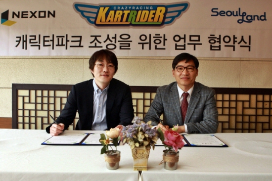 ㈜넥슨(대표 서민)은 서울랜드와 자사의 인기 캐주얼 게임 ‘크레이지레이싱 카트라이더(이하 카트라이더)’의 지적재산권(IP)을 활용한 사업을 공동으로 펼쳐나가기 위한 업무협약을 체결했다고 15일(월) 밝혔다.