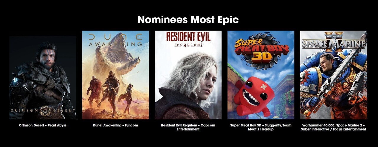 붉은사막은 한국 게임 중 유일하게 최고의 비주얼(Best Visuals,) 에픽(Most Epic), 최고의 소니 플레이스테이션 게임(Best Sony PlayStation Game), 최고의 엑스박스 게임(Best Microsoft Xbox Game) 총 4개 부문 후보로 선정됐다.