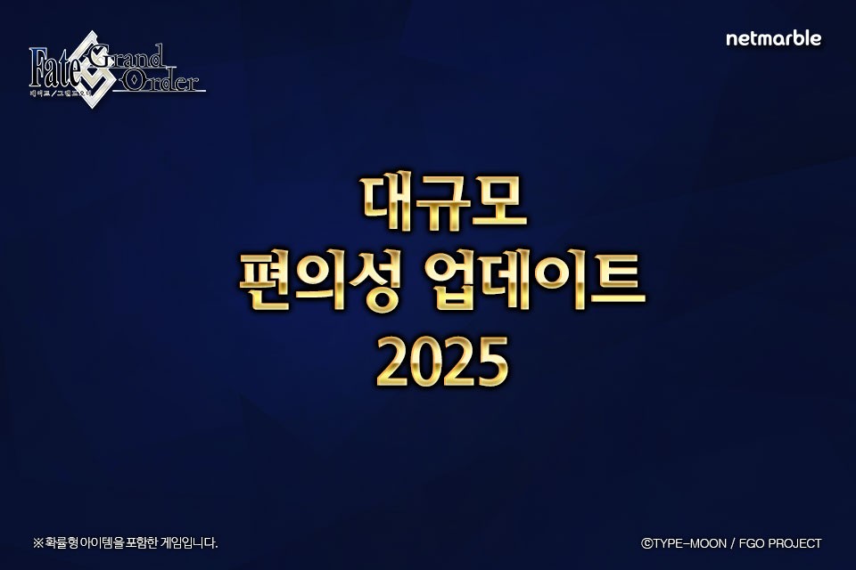 넷마블이 28일 모바일 RPG '페이트/그랜드 오더'에서 '대규모 편의성 업데이트 2025'를 실시했다.