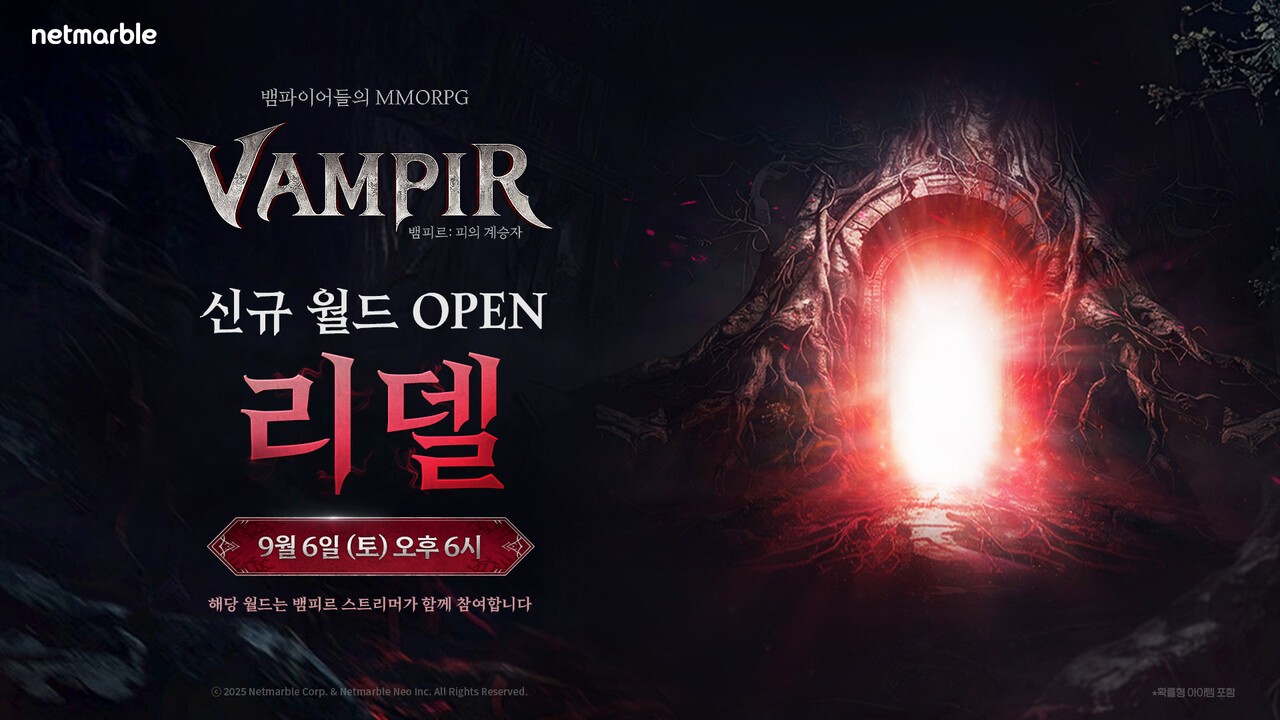 넷마블이 신작 MMORPG '뱀피르'에서 신규 월드 ‘리델’을 오는 6일 오픈한다.