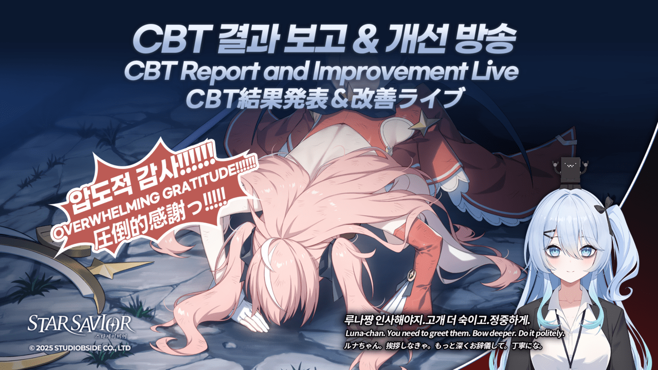 스튜디오비사이드가 개발 중인 신작 서브컬처 '스타세이비어'가 최근 진행된 비공개 베타 테스트(CBT)의 주요 결과와 유저 피드백을 반영한 개선사항을 최근 버튜버로 데뷔한 류코짱(류금태 대표)을 통해 공식방송을 진행했다.