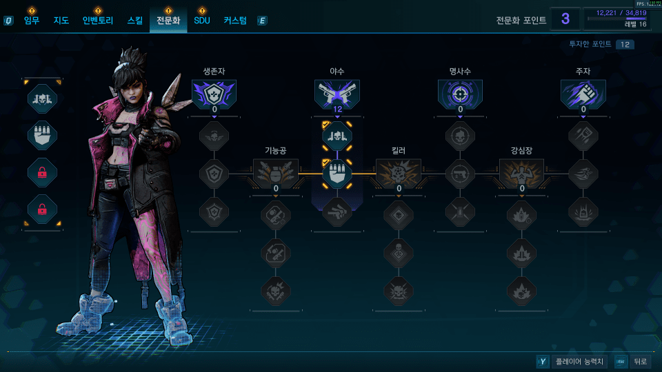 노드는 크게 패시브 스킬과 프레스티지 노드로 나뉜다. 패시브 스킬은 특정 프레스티지 노드에 포인트를 투자하면 순차적으로 열리며, 해금된 스킬은 최대 4개까지 슬롯에 장착해 효과를 받을 수 있다.