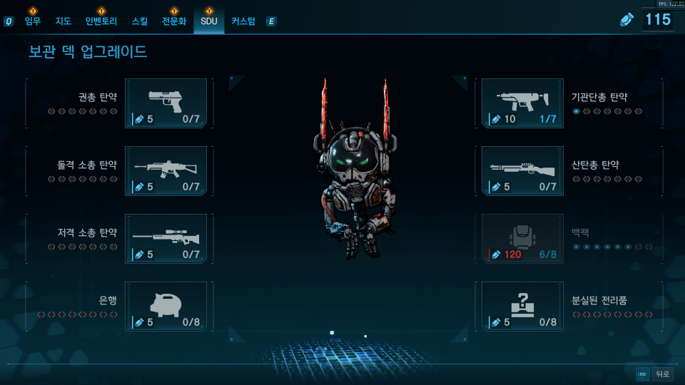 메인 퀘스트를 마치고 가장 먼저 해야 할 일은 보관 덱 업그레이드다. 이를 통해 백팩과 은행 보관 슬롯을 늘릴 수 있으며 권총, 돌격 소총, 저격 소총 등 무기별 탄약 최대 보관량도 확장된다.