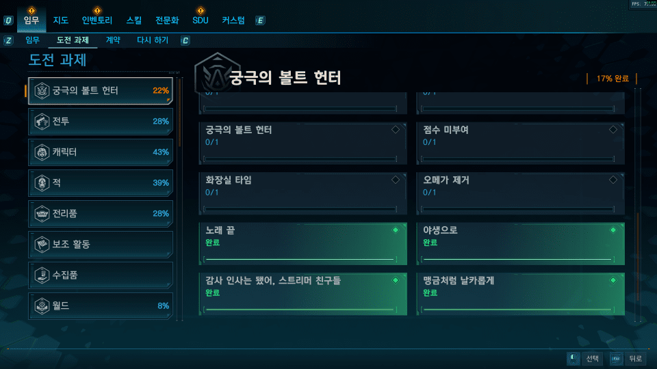 랭크별 해금 조건은 도전 과제 탭에서 확인할 수 있다. 어떤 보스를 잡아야 하는지, 어떤 임무를 완료해야 하는지 미리 확인해두면 효율적으로 랭크를 올릴 수 있다.