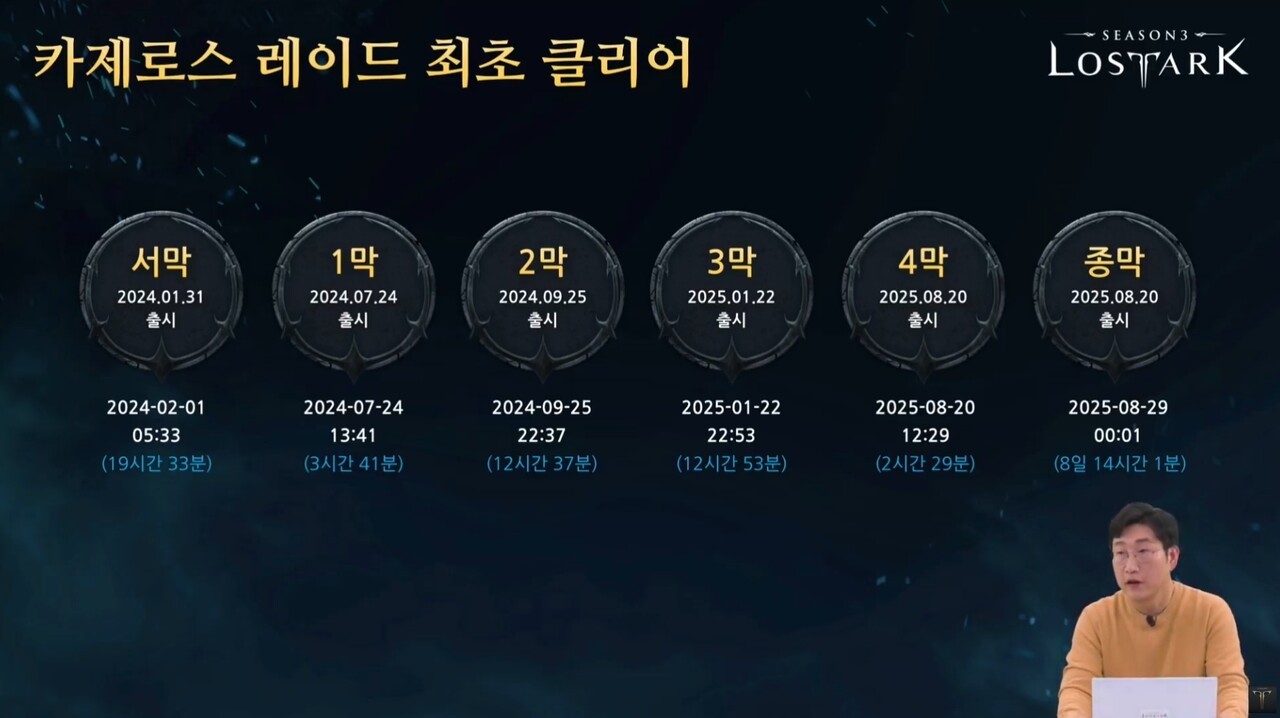 5일이나 7일 예상했는데, 퍼스트 클리어 시간이 오래 걸렸다. 버그와 잦은 임시 점검 영향이 있었고, 후반부 기믹 공략이 지체됐다. 지금까지 레이드 중 가장 높은 난도로 제작된 만큼 더 퍼스트 탑 텐 공격대들은 정말 대단한 위업을 성취한 것이다.
