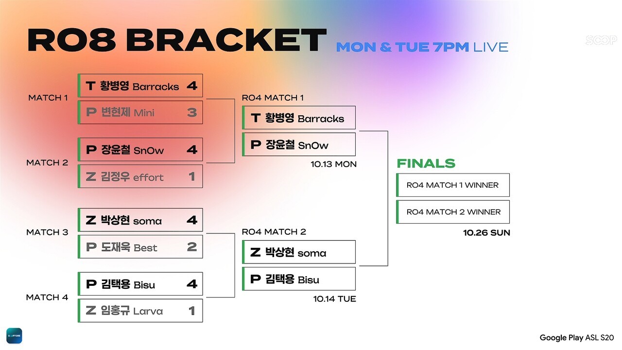 글로벌 라이브 스트리밍 플랫폼 SOOP은 30일 블리자드 스타크래프트 리마스터 대회 Google Play ASL 시즌 20 8강 4경기를 진행했다.