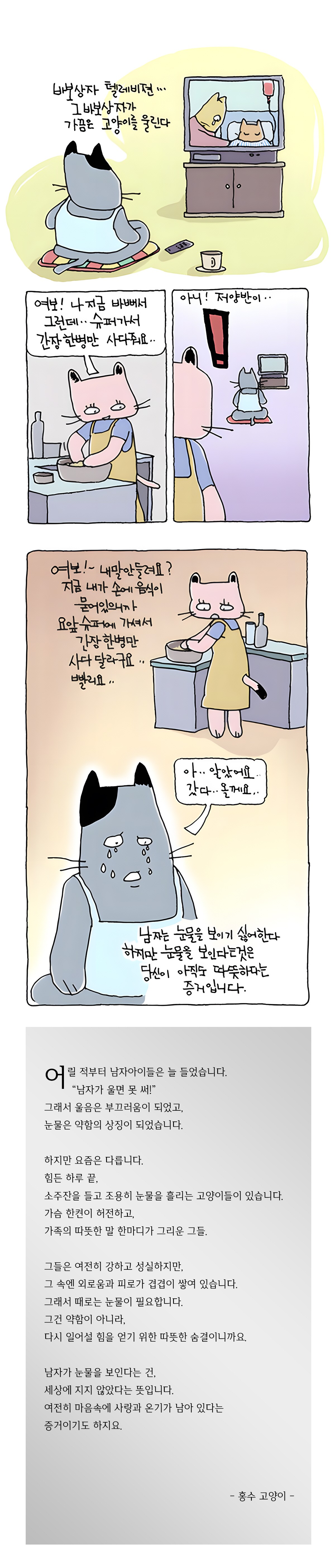 이 기사와 함께 보면 좋은 기사 주홍수의 웹툰 '나옹이네' 86화 '간장' 주홍수의 웹툰 '나옹이네' 85화 '여유가 있는 고양이' 주홍수의 웹툰 '나옹이네' 84화 '사랑한다는 것' 주홍수의 웹툰 '나옹이네' 83화 '말' 주홍수의 웹툰 '나옹이네' 82화 '웃음' 주홍수의 웹툰 '나옹이네' 81화 '사랑' 주홍수의 웹툰 '나옹이네' 80화 '마인드 바이러스' 주홍수의 웹툰 '나옹이네' 79화 '혼자서 살아남는 법'