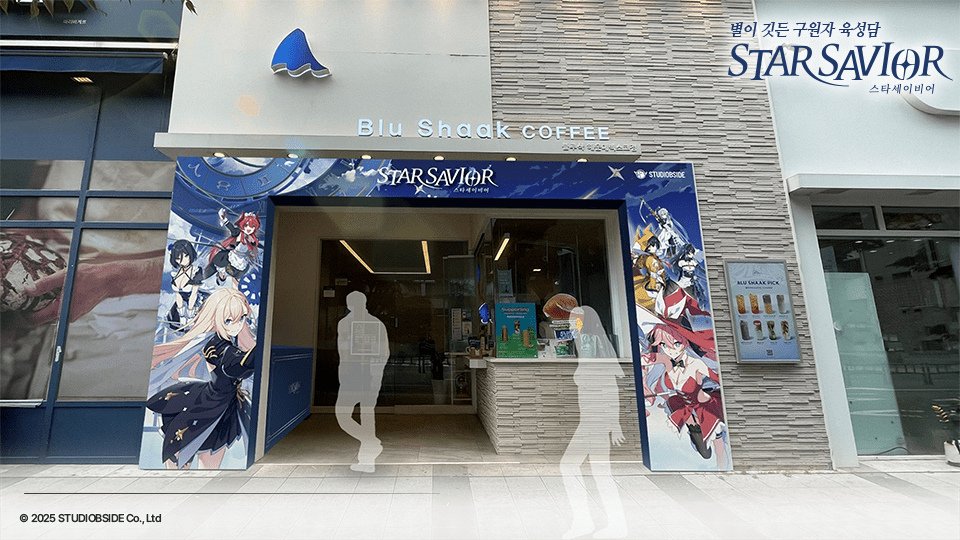스튜디오비사이드가 부산 ‘블루샥 커피 벡스코점’에서 출시 예정 신작 ‘스타세이비어’의 컬래버레이션 카페를 진행한다.