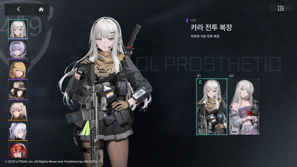 전술의체는 기본적으로 전투 병기라는 설정이 있어서 전투복을 중심으로 구성돼 있다. 다만 캐릭터마다 개성과 이야기가 있기 때문에, 시연에서 보신 것처럼 일상복도 함께 준비하고 있다.