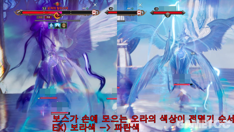 - 보스가 손에 모으는 오라의 색상 파악 후 전멸기 순서에 따라 안전 지역 이동