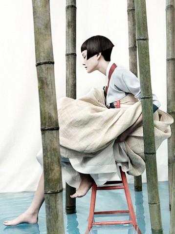 이진: 3월 초쯤 대학 시절부터 고민해왔던 한국적 주제를 갖고 그림을 그리고 싶었다. 그때 우연히 한 잡지(Vogue)를 보게 됐다. 한복을 입은 여성모델이 표지를 장식했다. ‘이거구나’하는 생각이 들었다. 지인들을 통해 20년 동안 한복만 만들었고, 영화 ‘쌍화점’ ‘스캔들-조선남녀상열지사’의 의상제작자 담연 선생 작품이라는 걸 알았다.