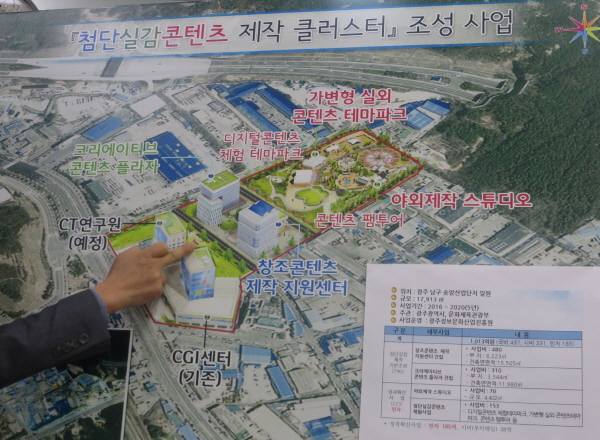 광주 남구 송암산업단지에 2020년까지 5년간 17,913평방미터에 조성되는 첨단실감콘텐츠 제작 클러스터는 국비 1013억원에 투입되어 VR 선도에 날개를 달아준다.
