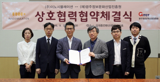 광주정보문화산업진흥원(원장 이정현, 이하 광주진흥원)이 전문기업 이노시뮬레이션(대표이사 조준희)와 VR 체감형 게임콘텐츠 육성을 위한 업무협약을 체결했다.