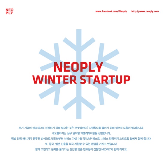 이미 지난 3월 스타트업을 한 차례 모집한 바 있는 네오플라이는 이번 겨울 모집을 통해서도 가능성과 성장 잠재력을 보유한 역량 있는 스타트업을 발굴, 육성해 나갈 방침이다.