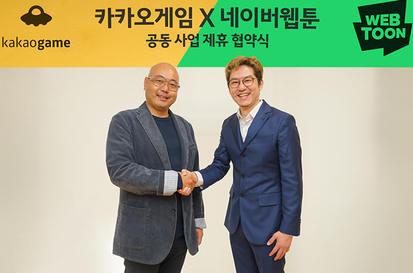 카카오(대표 임지훈)와 네이버웹툰(대표 김준구)이 모바일게임 서비스 콜라보레이션을 위해 손을 맞잡았다.