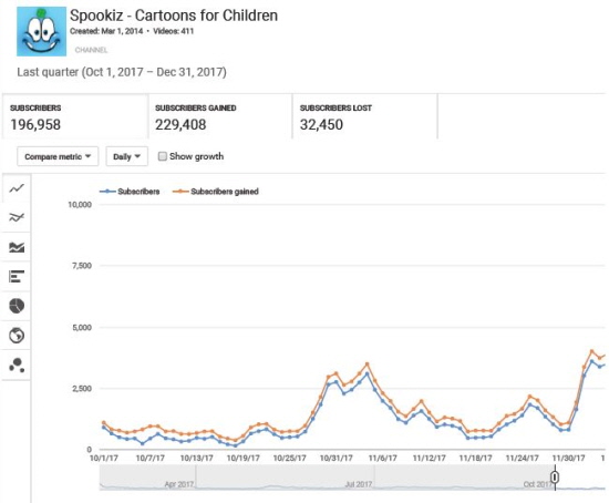 키링 스튜디오가 제작한 한국 애니메이션 ‘스푸키즈(Spookiz)’의 글로벌 인기가 심상찮다. 2018년 2월 현재 ‘스푸키즈’ 유튜브 채널의 구독자수는 70만명, 2018년 1분기의 반도 안되는 기간 동안 약 28만명의 구독자가 늘었다.
