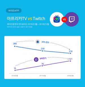 2위는 ‘아프리카TV’로 201만 명이 총 11억 분을 사용해 3.3%의 점유율이었다. 3위는 ‘네이버TV’로 497만 명이 총 6.6억 분을 이용해 2%를 점유했다. 그 뒤를 ‘비디오포털’, ‘MX플레이어’, ‘옥수수(oksusu)’ 등이 차지했다.