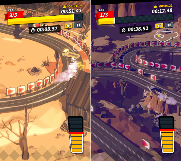 그러나 무작정 가속 페달만 밟는다고 게임을 클리어할 수 있는 것은 아니다. 서관희 대표는 “실제 슬롯카에서는 커브 구간에서 속도를 계속 올리면 모형 자동차가 튕겨져 나간다”고 말했다. ‘온슬롯카’ 역시 세심하게 속도를 줄이지 않으면 튕겨져 나가는 차를 볼 수 있다.