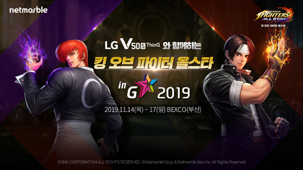 넷마블의 킹 오브 파이터 올스타는 LG전자 부스 내 설치된 LG V50S ThinQ를 통해 플레이 할 수 있으며, 14일부터 17일까지 현장 방문객이 참여할 수 있는 이용자 대회가 진행된다. 전문 MC 허준, 게임해설자 온상민, 정인호, BJ ‘난닝구’, BJ ‘비범’, ‘나리’와 함께하는 특별 이벤트도 마련됐다.