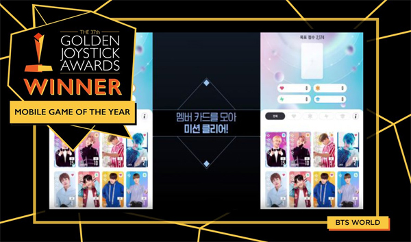 넷마블이 서비스하고 테이크원컴퍼니가 개발한 ‘BTS 월드(BTS World)’가 2019년 골든 조이스틱 어워드(Golden Joystick Awards)에서 올해 최고의 모바일 게임상을 수상했다.
